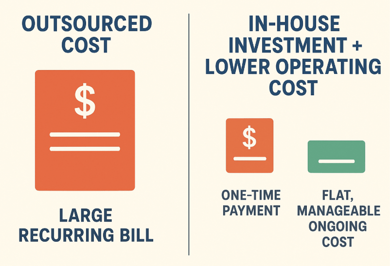 - Streamlined Communication: The administrative burden of outsourcing sending emails, making phone calls to check on job status, and coordinating with multiple contacts is completely eliminated. All communication is internal and can be done face to face, which streamlines your internal operational efficiency and frees up your team to focus on more strategic tasks. The result is a more cohesive and productive team.