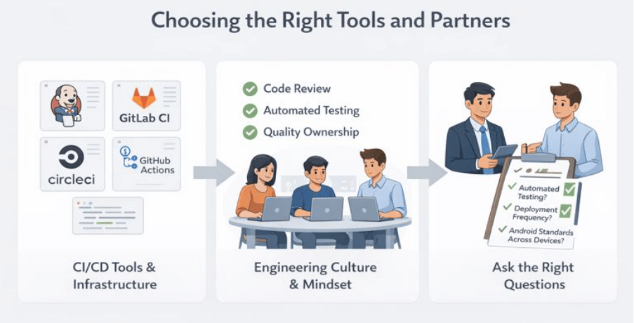 When looking for a partner, prioritize software development firms that can articulate their CI/CD strategy. Ask them: