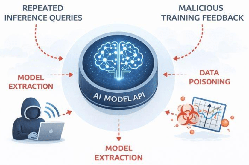 Attackers can sometimes query your API repeatedly to reconstruct the underlying model or extract the data it was trained on. This is known as model inversion or extraction. Standard web application firewalls (WAFs) might not detect these patterns because the requests look legitimate.