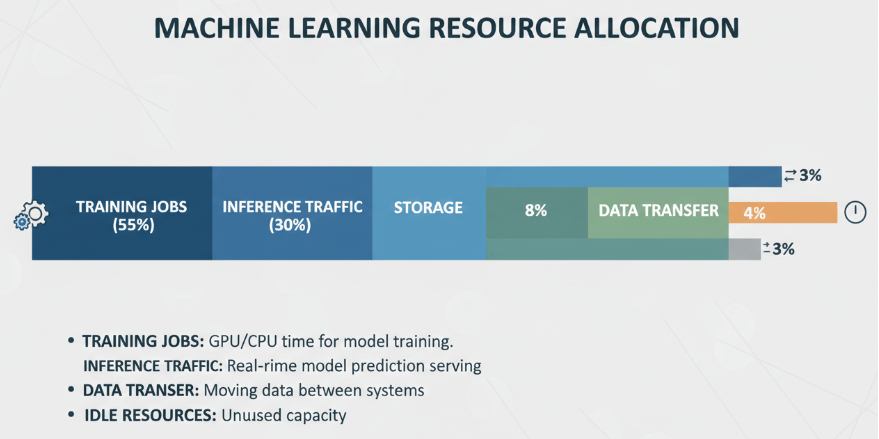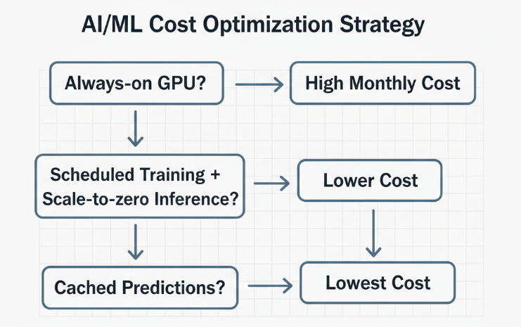- Warm/Cold Storage: Move older datasets, model artifacts, and archived logs to lower cost object storage classes (like S3 Infrequent Access or Glacier).
