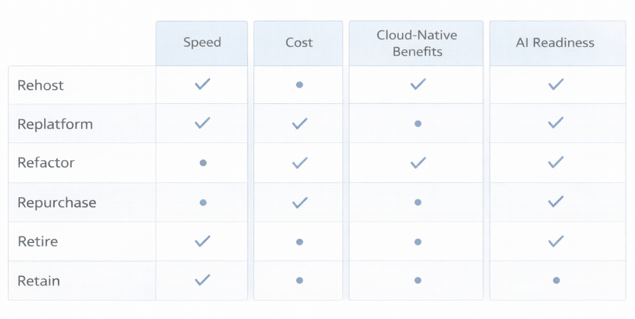 Not all applications require the same approach. Amazon Web Services (AWS) popularized the “6 R’s” framework, which remains the industry standard for categorizing migration strategies. Understanding this distinction is vital for determining technical feasibility and ROI.