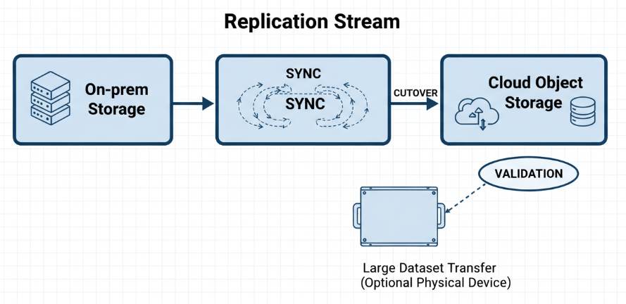 - Offline Transfer: For petabyte scale data, consider physical transfer devices (like AWS Snowball) to bypass network bandwidth limits.