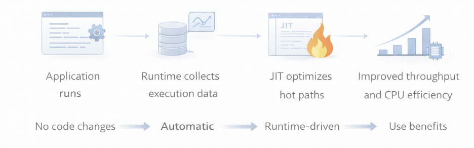 Dynamic PGO is now enabled by default. This feature allows the runtime to collect data about the application’s execution and use that data to optimize the generated code in real-time. By understanding which code paths are frequently executed, the JIT compiler can make smarter decisions about inlining and register allocation.