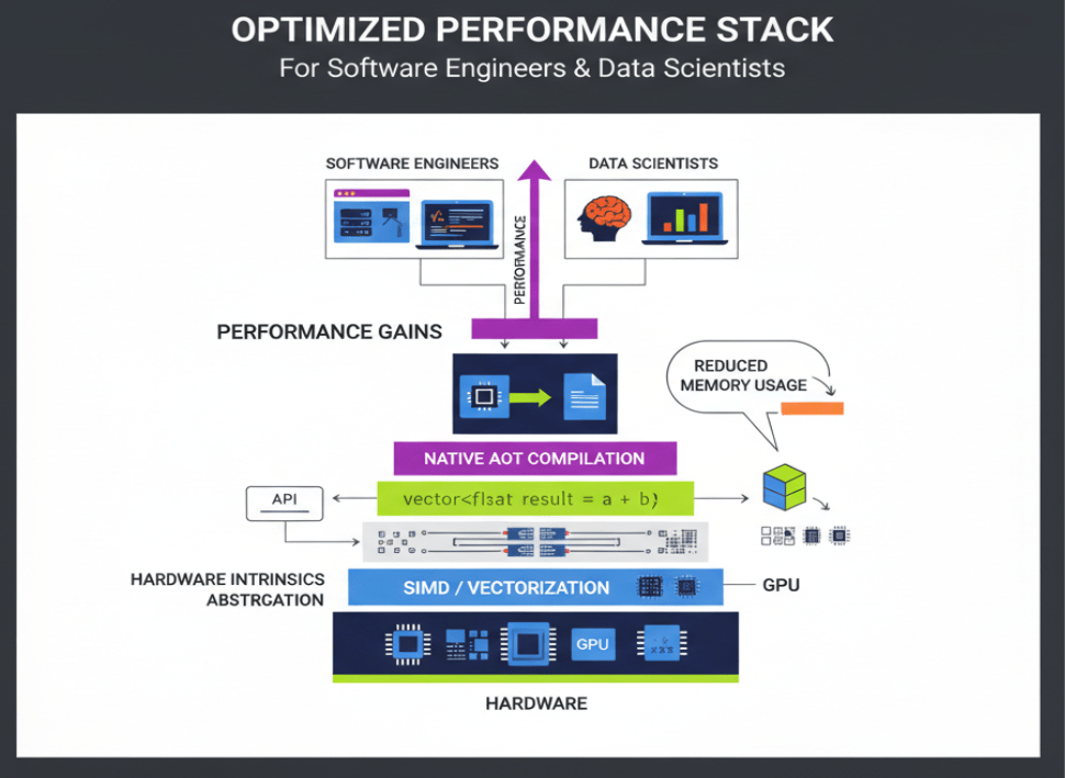 As AI and data processing workloads grow, utilizing the full power of modern CPUs (and GPUs) becomes essential. .NET will likely abstract complex hardware intrinsics even further, allowing standard LINQ queries or data processing loops to automatically utilize SIMD (Single Instruction, Multiple Data) vectorization without the developer needing to write unsafe code.