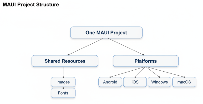 .NET MAUI implements a “Single Project” system. This structure consolidates your development experience: